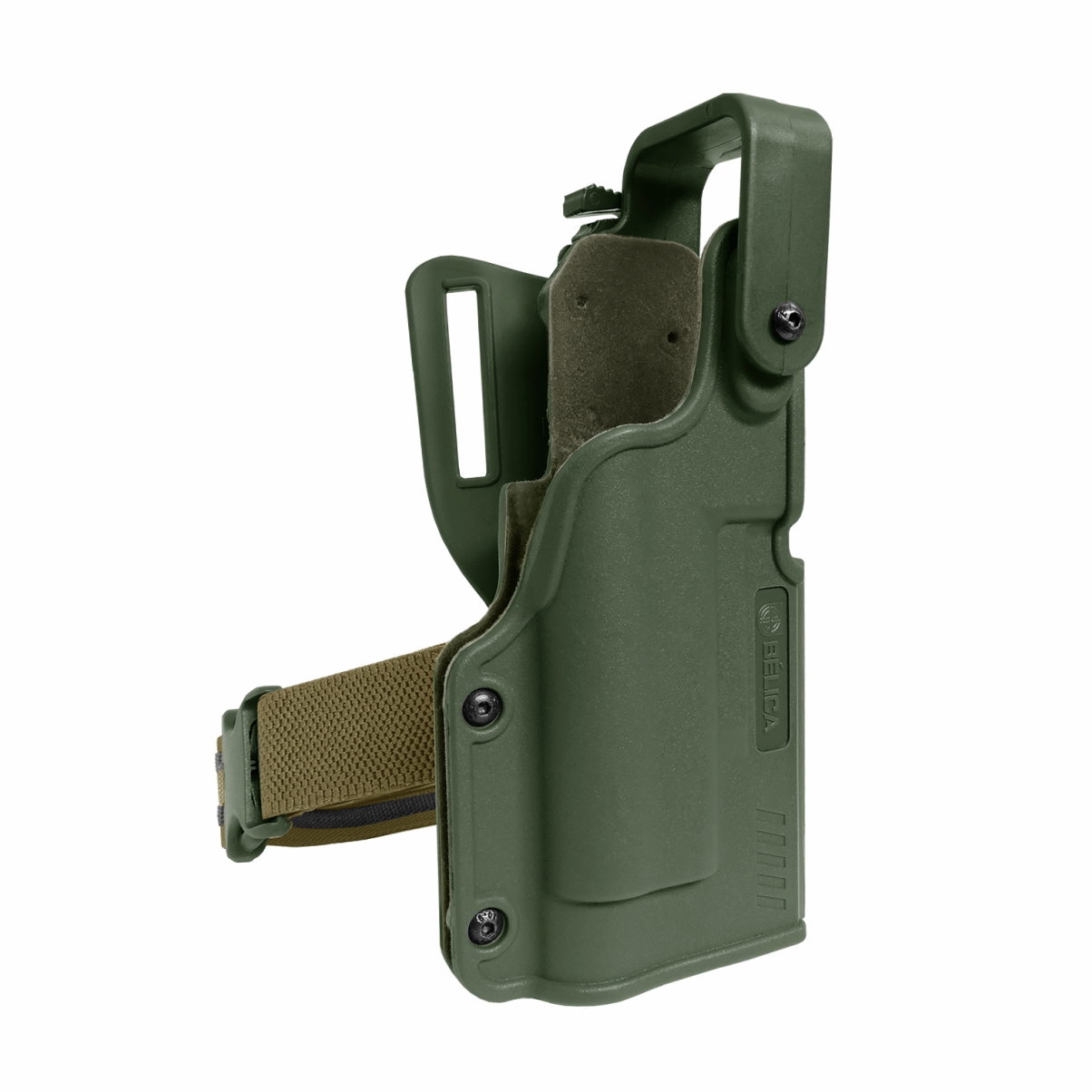O Coldre Black Light Mid-Ride Bélica é feito de polímero de alta resistência, que garante a durabilidade e a proteção da sua arma. Além disso, ele é revestido, um material que evita riscos na superfície da pistola. Ele também tem um adaptador que permite o uso da arma sem a lanterna, ocupando o espaço vazio e mantendo o encaixe perfeito. Com esse coldre, você pode usar a sua pistola com ou sem o acessório, de acordo com a sua preferência e necessidade.