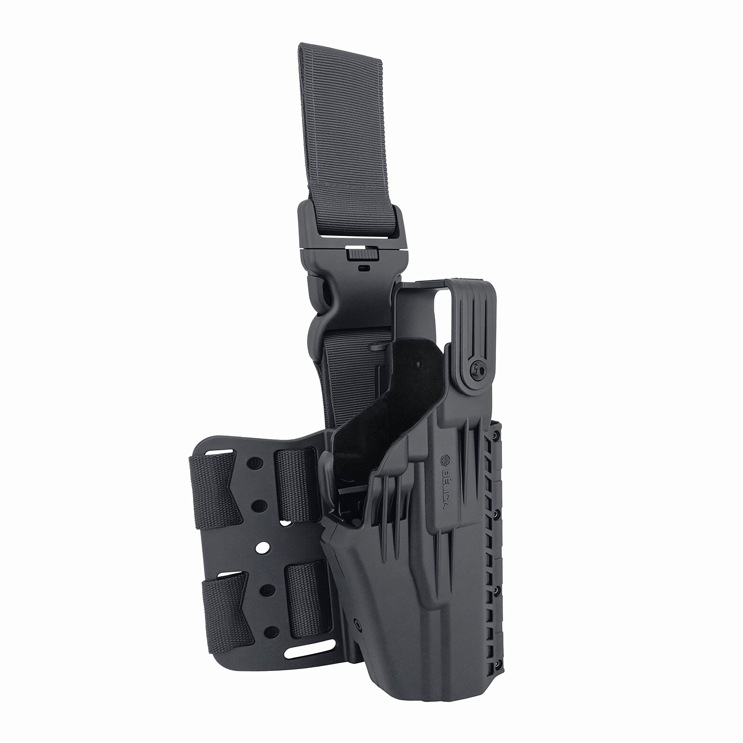 O Coldre HUNTER-SP Bélica agora está formatado com plataforma de perna no padrão PMESP, traz consigo inovação no sistema de travamento e retenção da arma. Dispõe da combinação de duas diferentes travas que aliam saque rápido e segurança operacional.Forte, robusto e funcional, traz consigo comodidade e eficiência no sistema de retenção da arma.