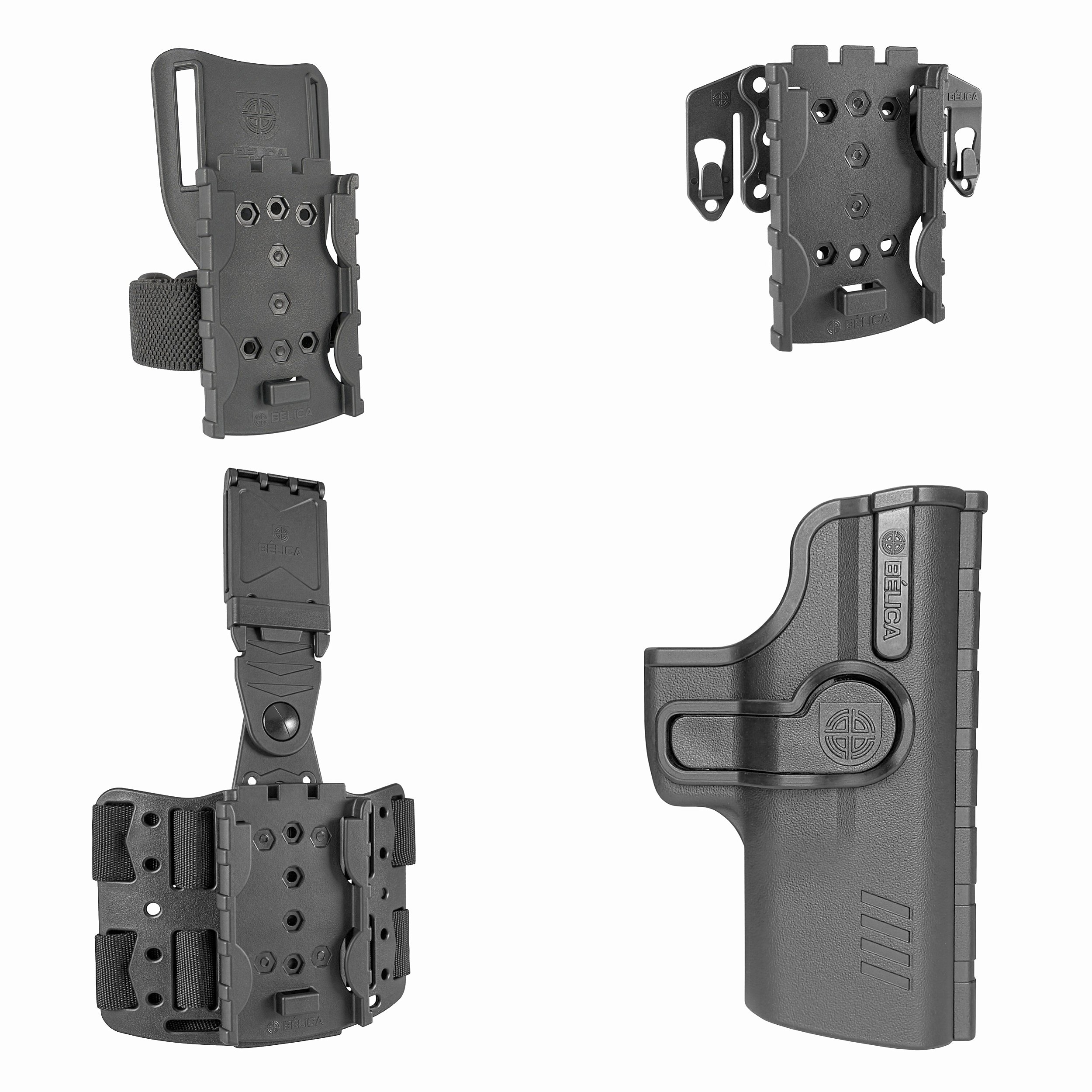 • A catraca serve também, para fixar o Coldre em outras plataformas Bélica compatíveis